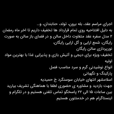 جهت برگذاری مراسم بله برون، عقد، حنابندون، پاگشا، تولد و …