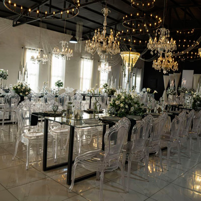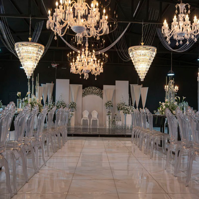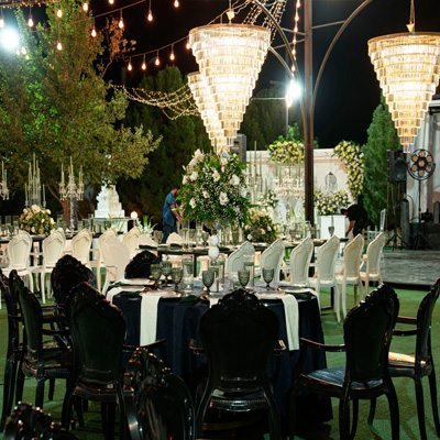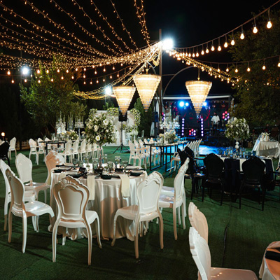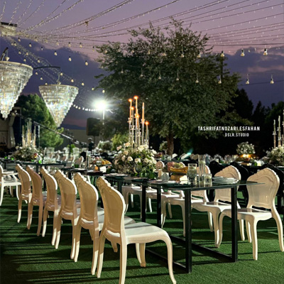 دارای فضای باز با ظرفیت 300 نفر وفضای سالن با ظرفیت 150 نفر