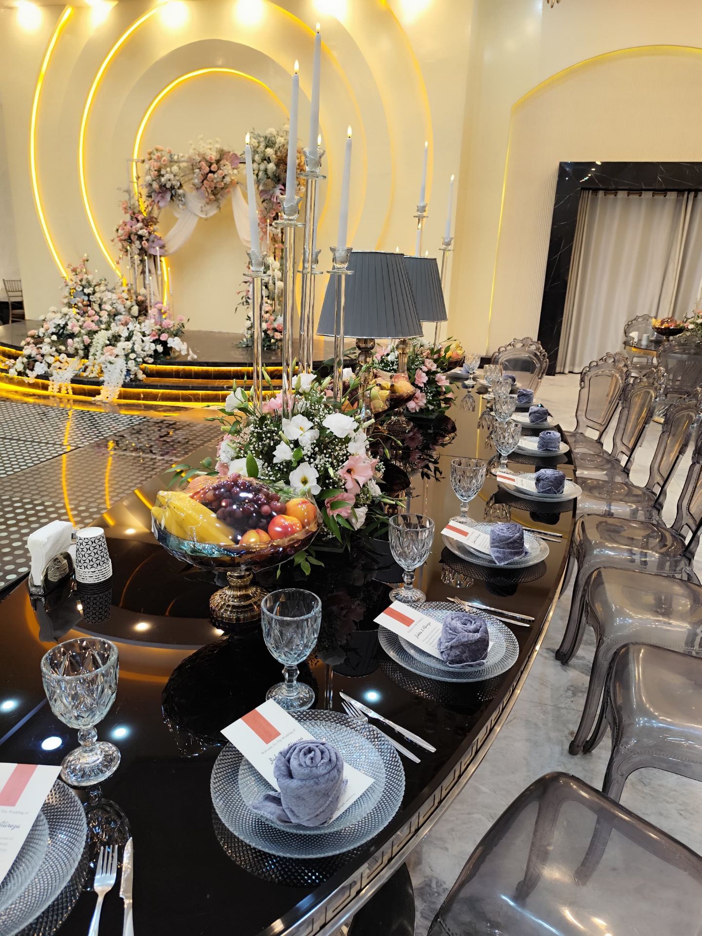 | ⭐تجهیزات نوری و صوتی | تجهیزات نوری و صوتی حرفه ای باعث ایجاد جو زیبا و باشکوه در مراسم عروسی می شود. |