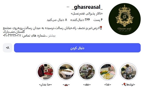 | تالار مجلل قصر عسل | خیابان رسالت | 04134438027 |